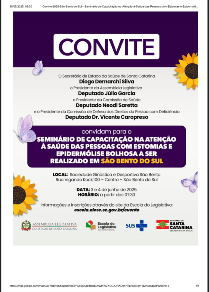 O seminário acontecerá aqui em São Bento do Sul em parceria com o Ambulatório de Feridas e o Programa de Ostomizados do município nos dias 3 e 4 de junho, a partir das 08 horas, na Sociedade Ginástica e Desportiva São Bento, e contará com uma programação diversificada que inclui palestras, rodas de conversa, oficinas práticas e relatos de experiências.
