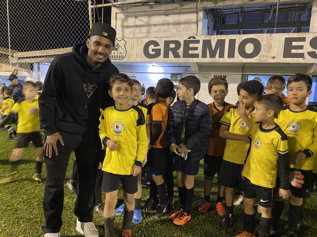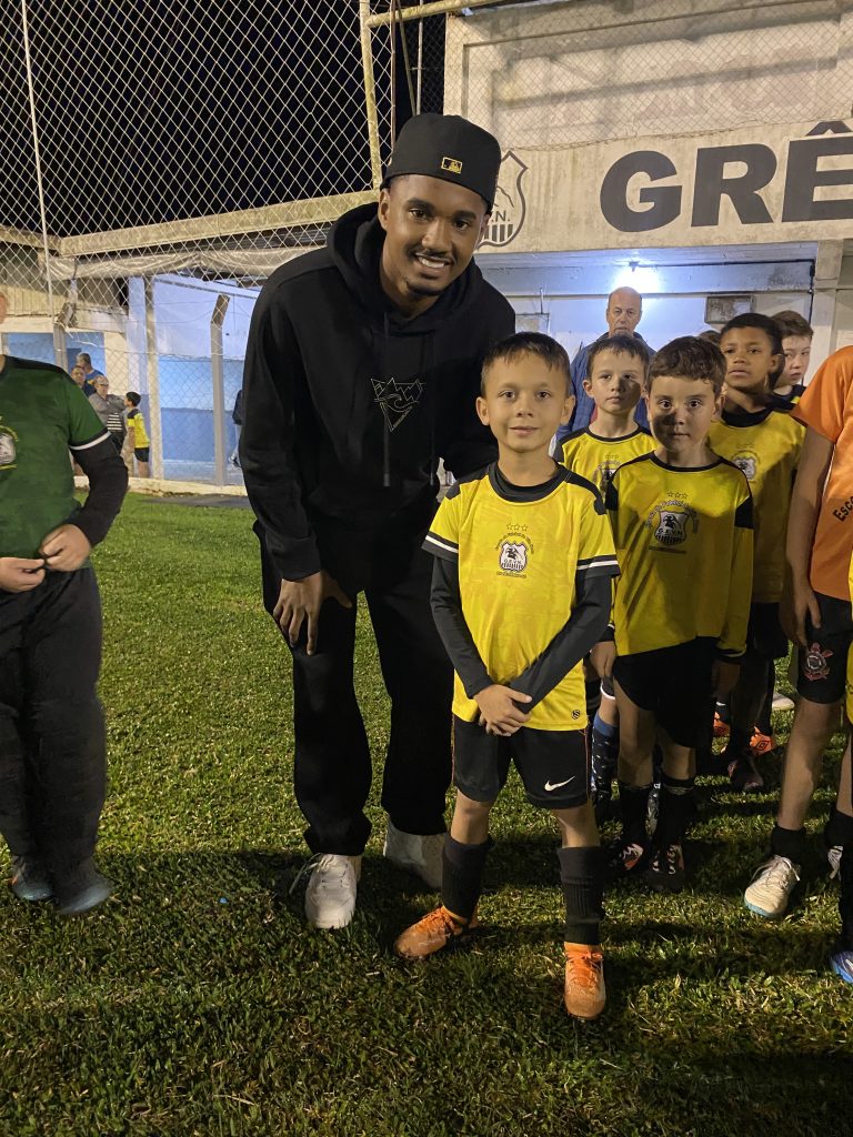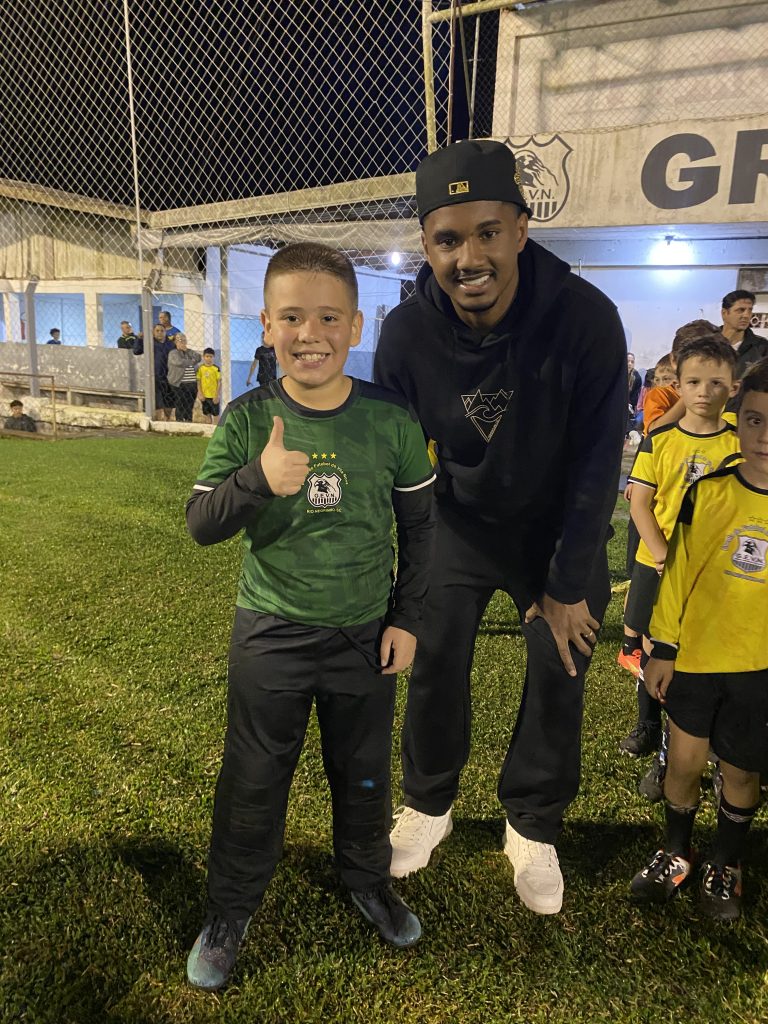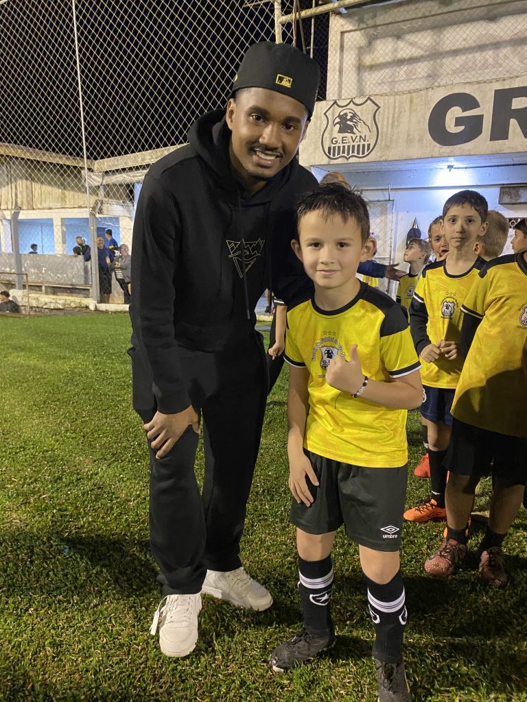 Nossa reportagem filmou as falas de Abner e Rhuan e do professor Romerito Trentini, que em seu discurso apresentou a dupla, falou sobre a disputa no mercado do futebol e lembrou aos pequenos sobre a importância de eles também irem bem na escola.