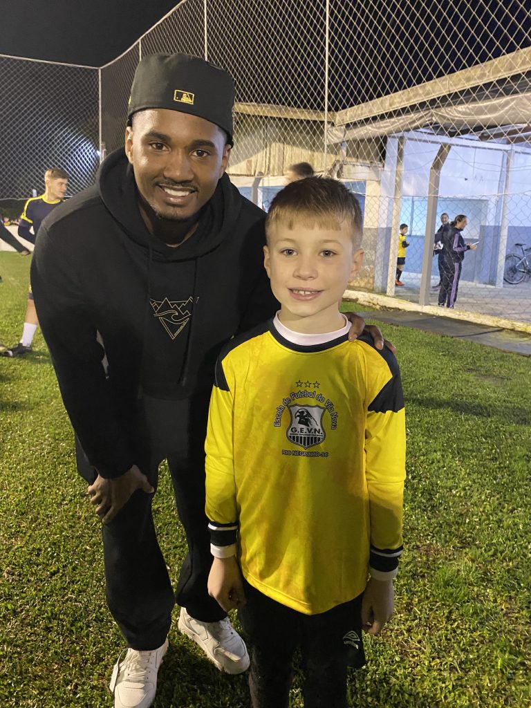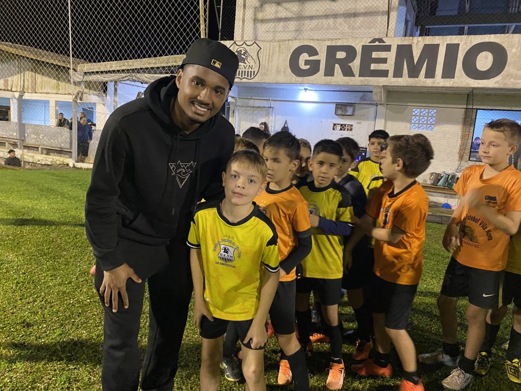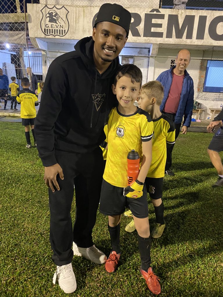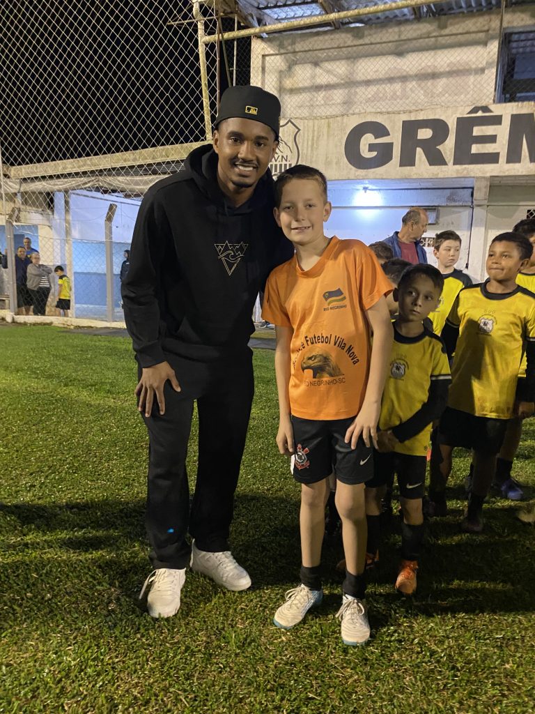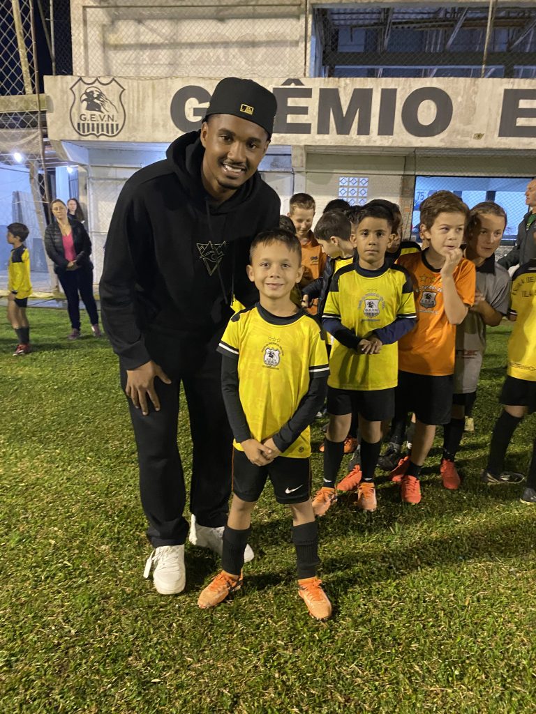 Nossa reportagem filmou as falas de Abner e Rhuan e do professor Romerito Trentini, que em seu discurso apresentou a dupla, falou sobre a disputa no mercado do futebol e lembrou aos pequenos sobre a importância de eles também irem bem na escola.