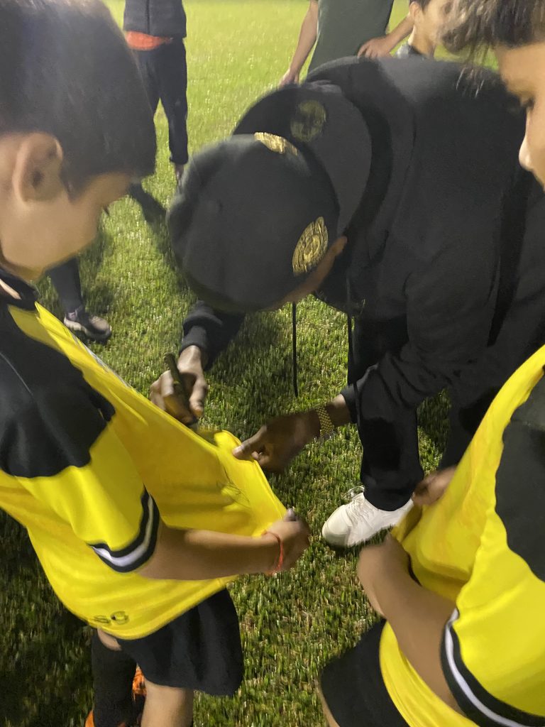 Alunos de uma das turmas da Escola de Futebol do clube, conheceram dois ilustres atletas profissionais e suas trajetórias e ainda receberam conselhos inspiradores.