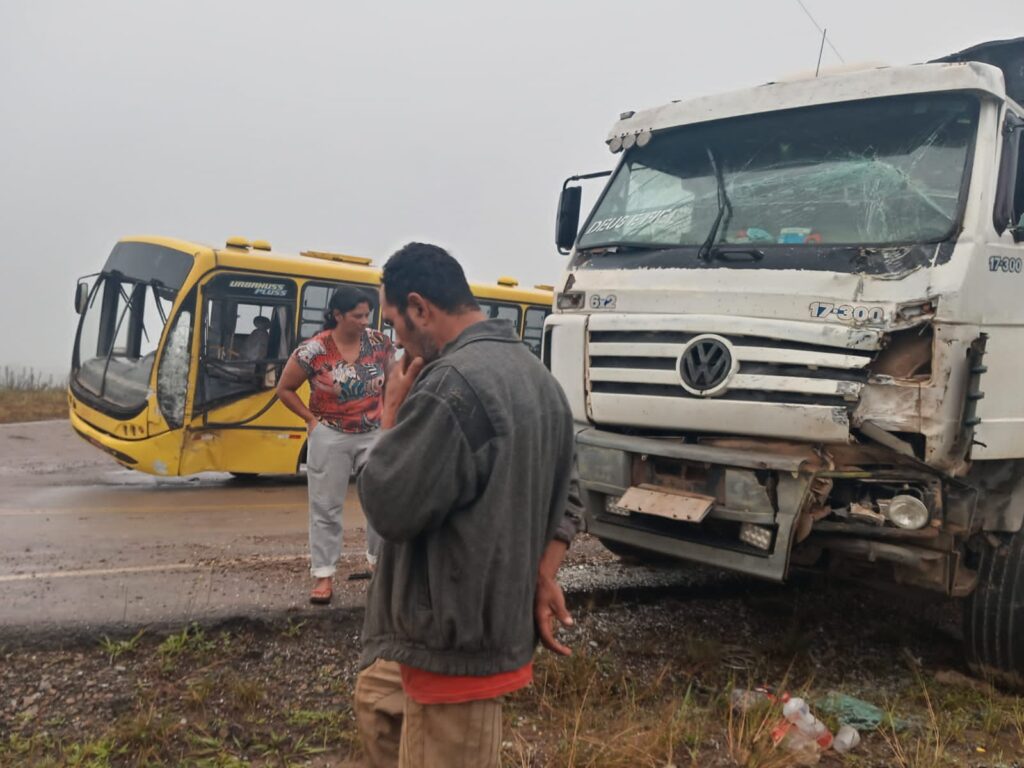 “Nosso motorista contou que foi atravessar a pista, que tem muitas curvas. A serração estava muito baixa e conforme ele, o caminhão apareceu de surpresa,batendo no ônibus, que já estava atravessando a via”.