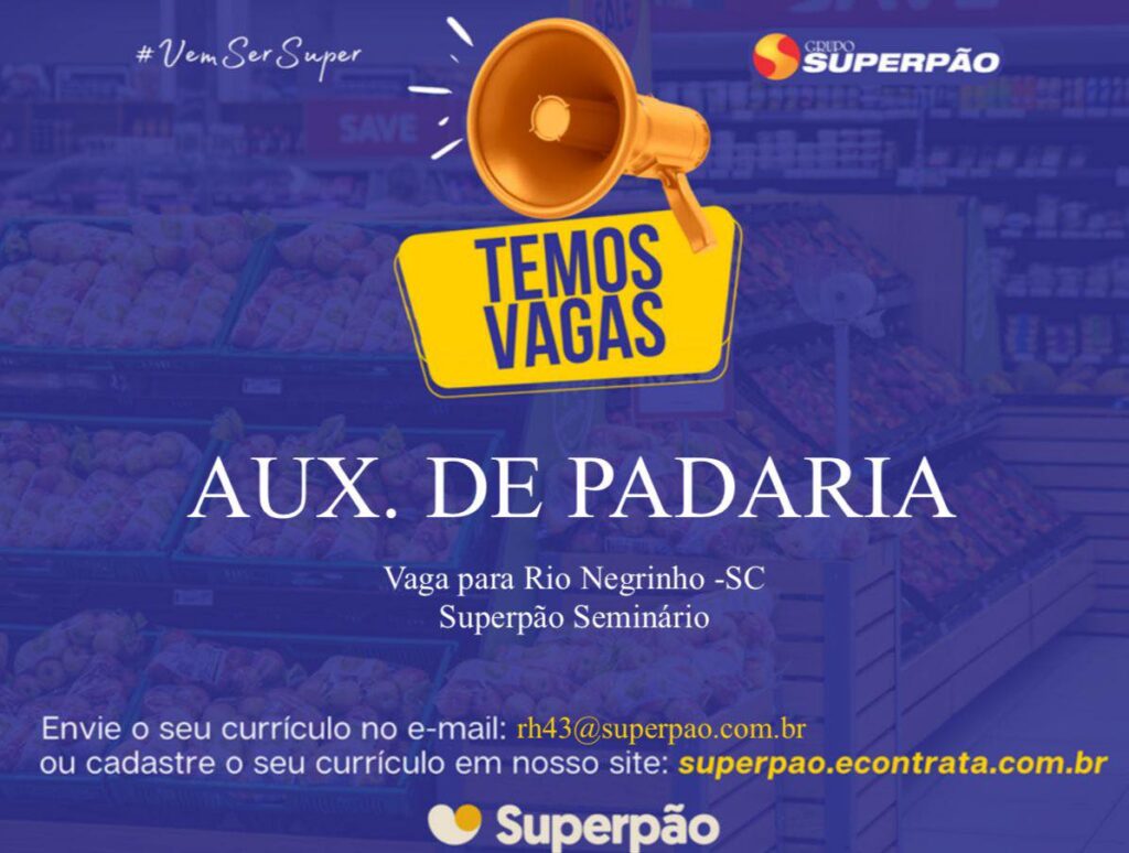 Oportunidades de trabalho no Superpão do MAK Center, em Rio Negrinho