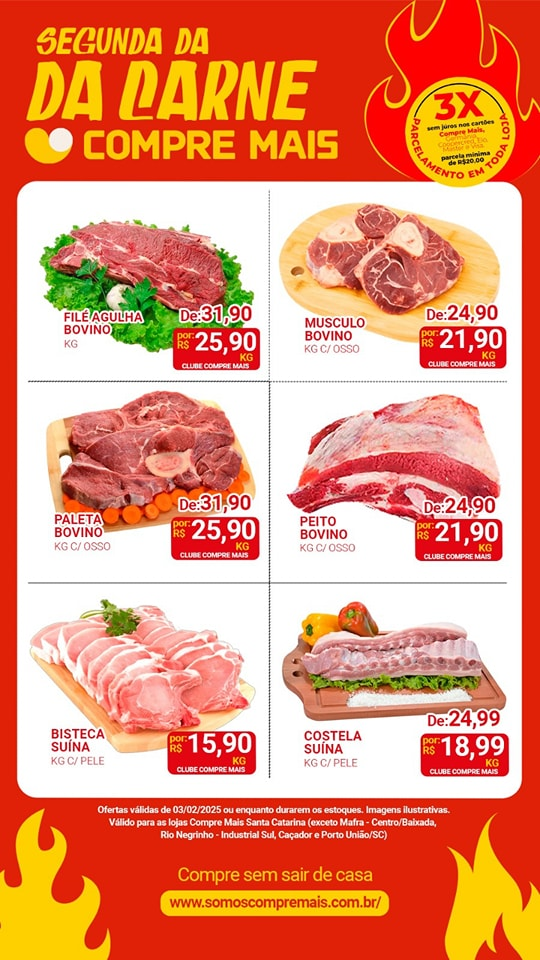 SANTA CATARINA. Segunda-feira é dia de promo no Açougue! Vem logo aproveitar essas ofertas, é só HOJE no Compre Mais!