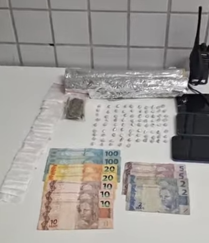 Além de apreender cocaína, crack e maconha, foram apreendidos objetos usados para a divisão e embalagem dos entorpecentes.