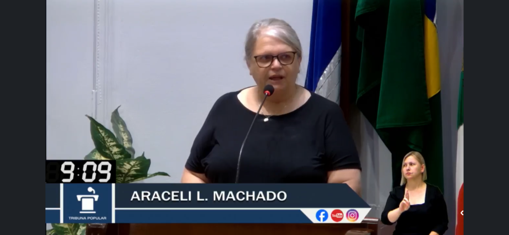 RIO NEGRINHO. Na sessão ordinária da Câmara de Vereadores realizada nesta segunda-feira (25), a Tribuna Popular recebeu Araceli L. Machado, representante do Colégio Cenecista São José. O pronunciamento teve como objetivo esclarecer questões sobre a instituição, incluindo, conforme ela, uma proposta de convênio negada pela prefeitura e o decreto municipal que visa a desapropriação do imóvel.
