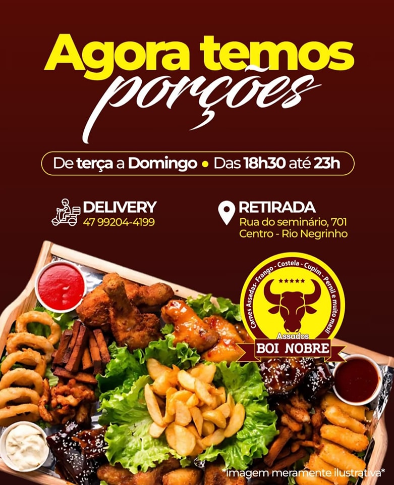 RIO NEGRINHO. Para você saborear carnes assadas, frango, costela, cupim, picanha e muito mais.