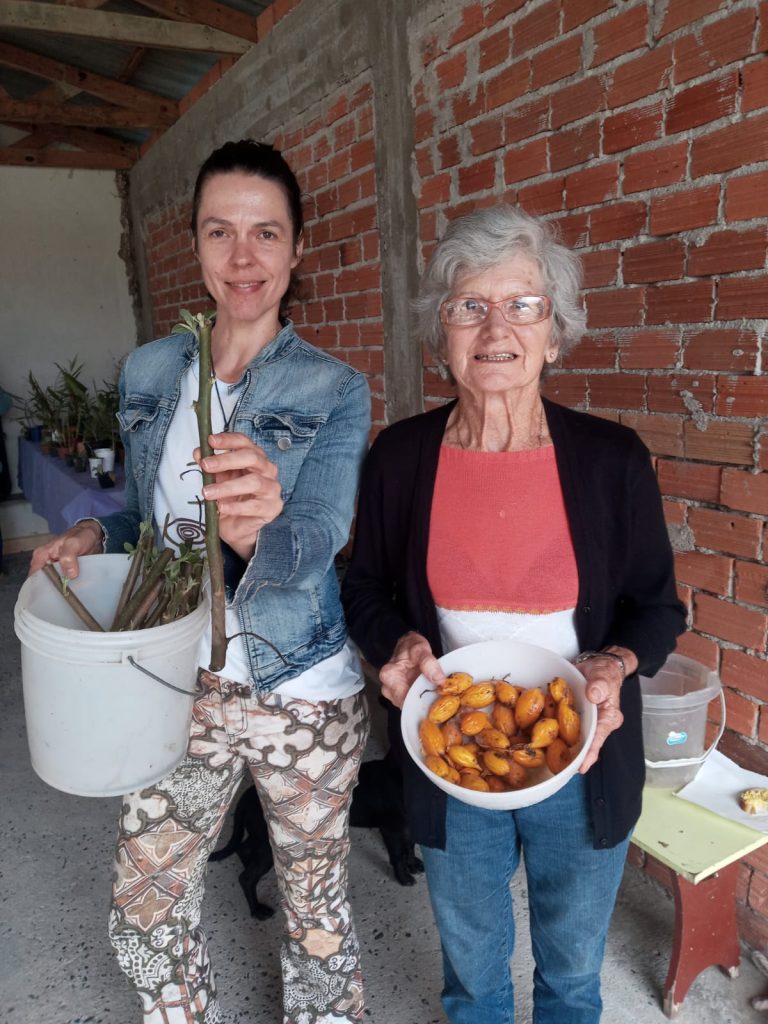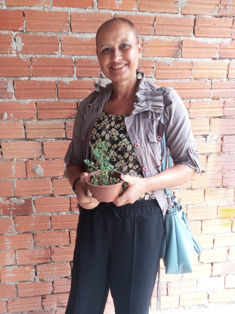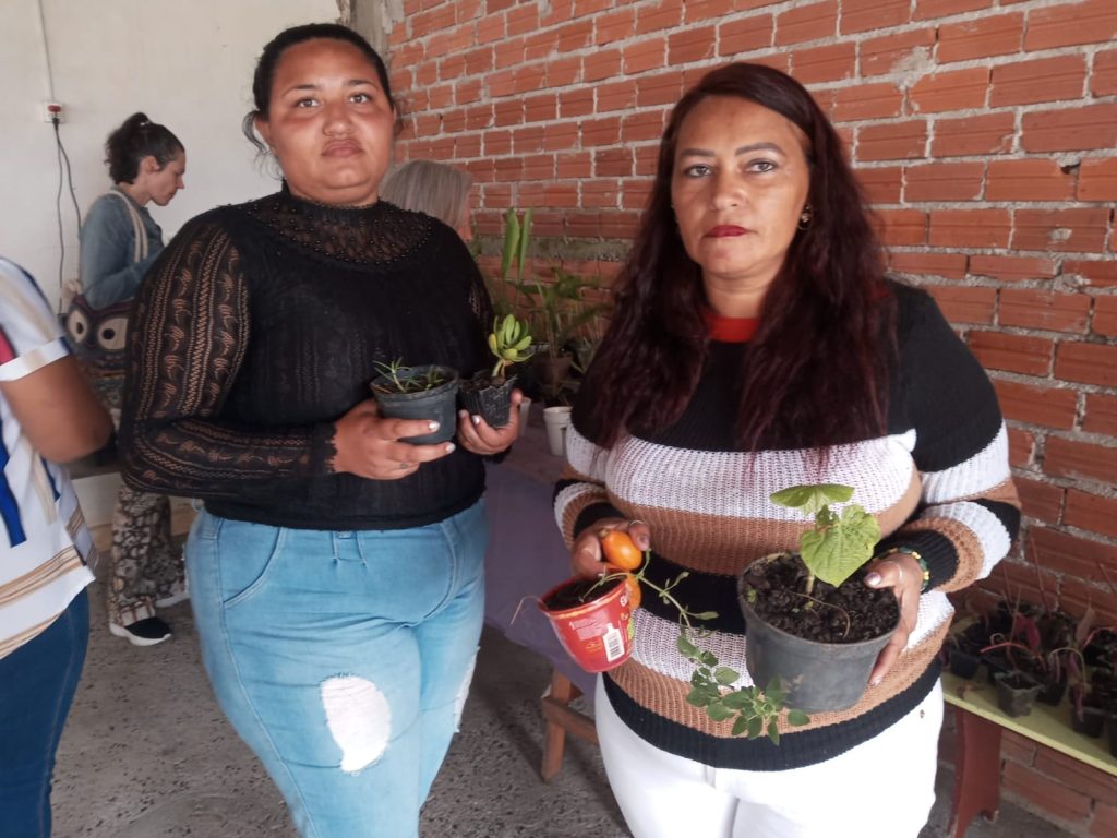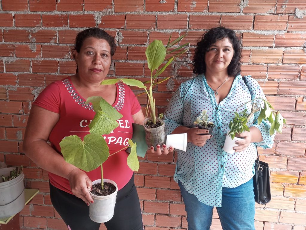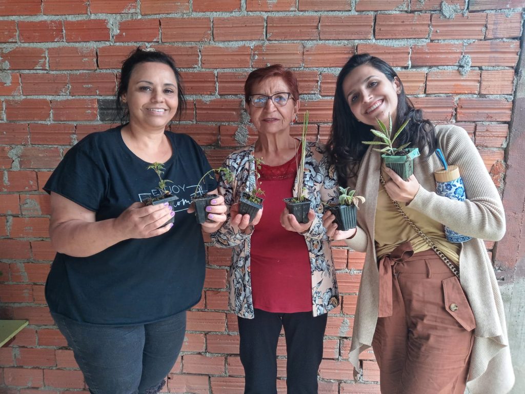 No final da palestra, as pessoas presentes receberam mudas de plantas que foi disponibilizada pela associação e que é cultivada ali mesmo no horto.
