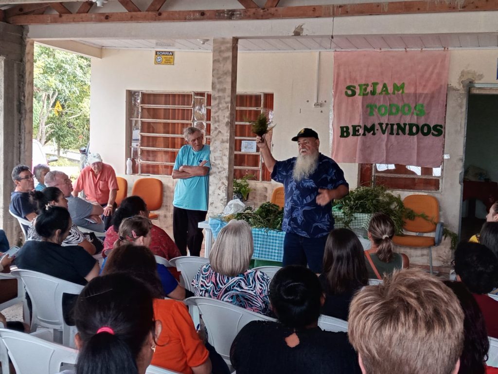 RIO NEGRINHO. Na tarde desta quarta-feira (26), a Associação de Moradores dos bairros Vila Nova e Industrial Sul recebeu a presença do renomado professor Alésio dos Passos Santos, mais conhecido como o “Bruxo das Plantas”. Especialista em plantas medicinais, Alésio trouxe uma palestra repleta de conhecimento, interação e bom humor. O evento também contou com a presença do deputado Padre Pedro Baldissera (PT).