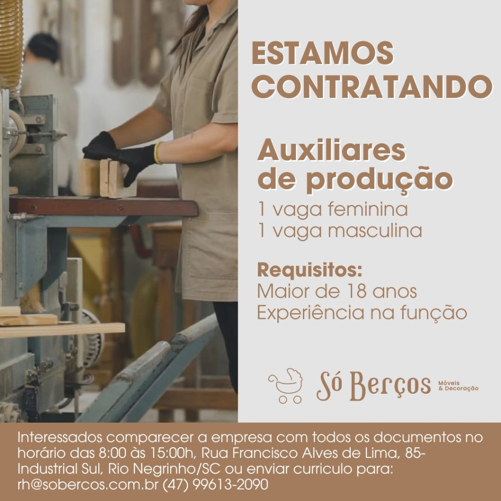 Empresa Só Berços está contratando em Rio Negrinho!