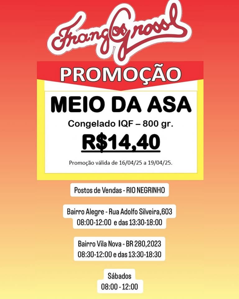 RIO NEGRINHO .Nesta Páscoa, traga mais sabor para sua mesa com nossas carnes de frango frescas e saborosas! Aproveite nossas ofertas especiais e faça do seu almoço de Páscoa um verdadeiro banquete!