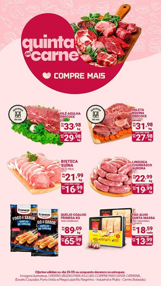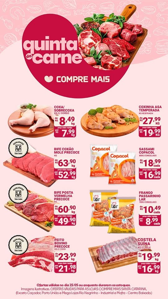Ofertas válidas para as Lojas Compre Mais Santa Catarina, (Exceto Caçador, Porto União e Mega Lojas Rio Negrinho – Industrial e Mafra- Centro Baixada)