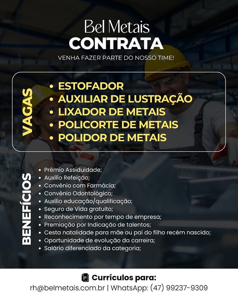 Envie seu currículo para: rh@belmetais.com.br
