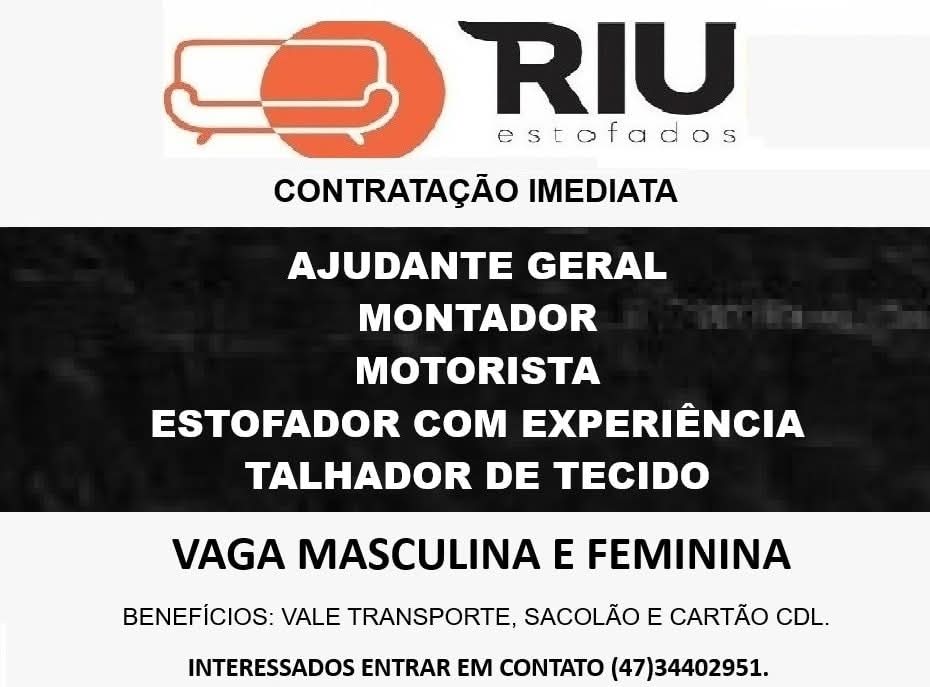 Ou envie seu currículo para o e-mail riuestofados@gmail.com