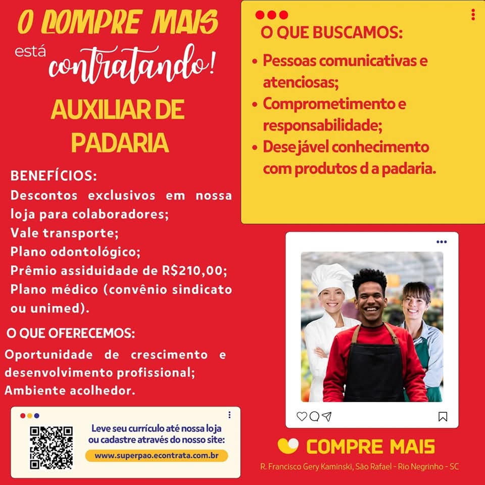 Leve seu currículo até a loja ou cadastre-se em nosso site: superpao.econtrata.com.br