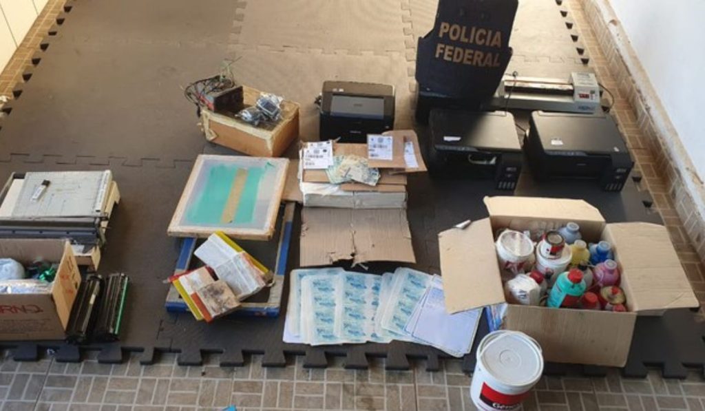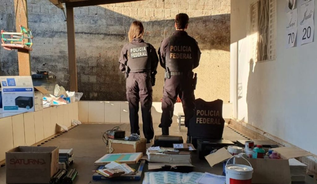 Durante a ação, 22 agentes da PF cumpriram cinco mandados de busca e apreensão, além de três mandados de prisão preventiva e um de prisão temporária. Nos locais, foram apreendidas impressoras, tintas especiais, materiais para corte e centenas de cédulas prontas ou em fase de produção.