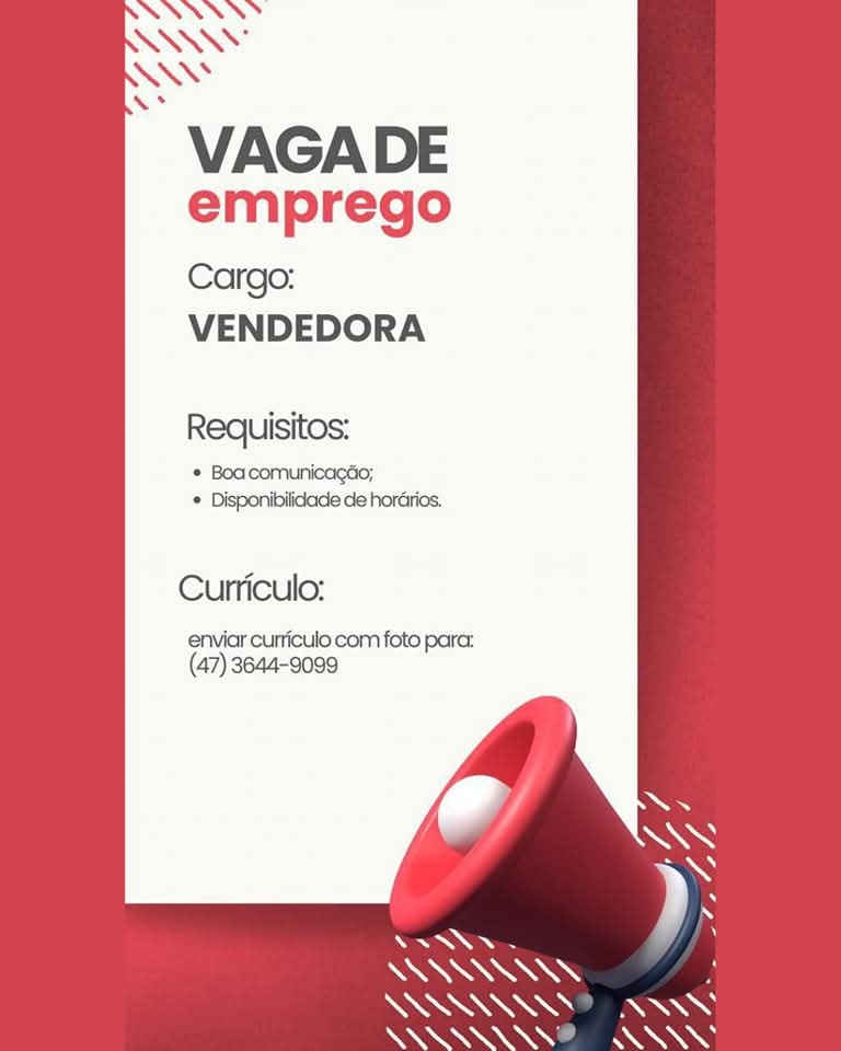 RIO NEGRINHO. Estamos contratando vendedora para loja de roupas e calçados no Centro de Rio Negrinho!