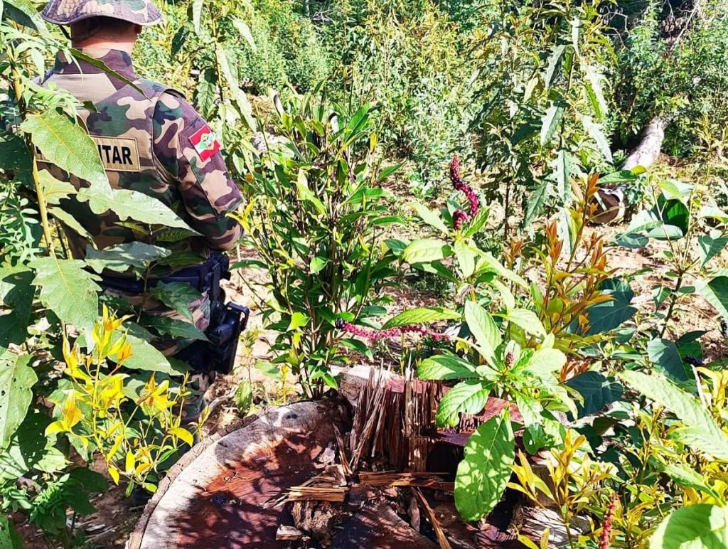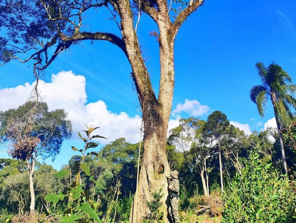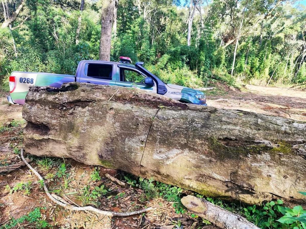 Polícia Militar Ambiental flagra corte seletivo de imbuias centenárias durante apuração de denúncia no interior de Mafra