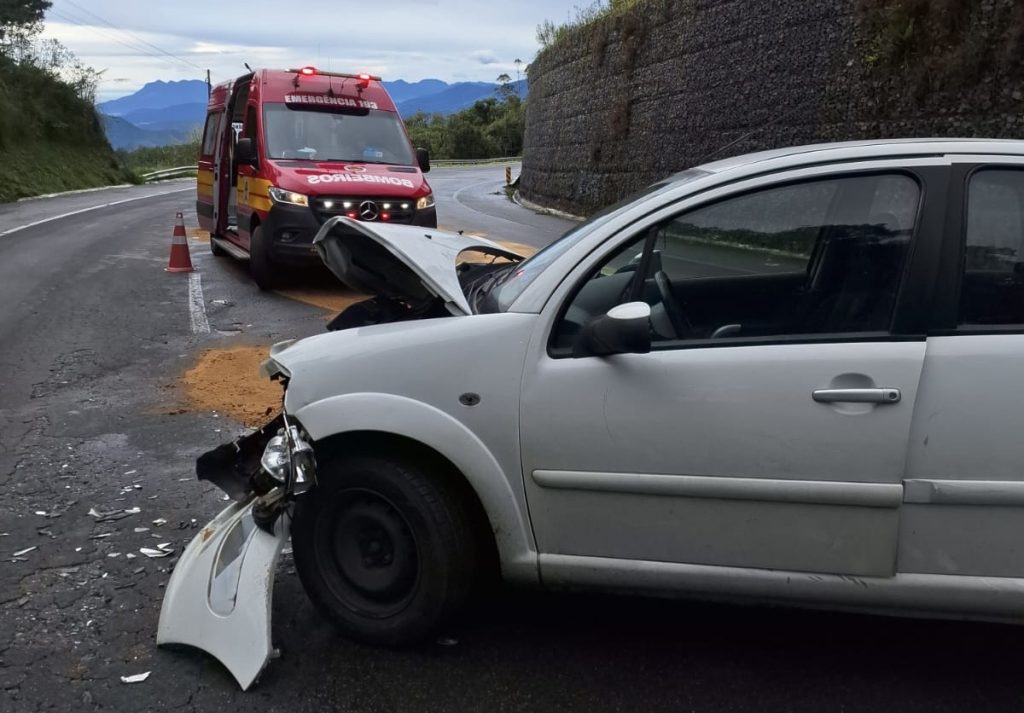 CORUPÁ. Um acidente envolvendo dois carros mobilizou equipes de emergência na tarde desta segunda-feira (23), na BR-280. A colisão ocorreu por volta das 13h27, no quilômetro 93 da rodovia, e deixou ao menos um homem ferido.