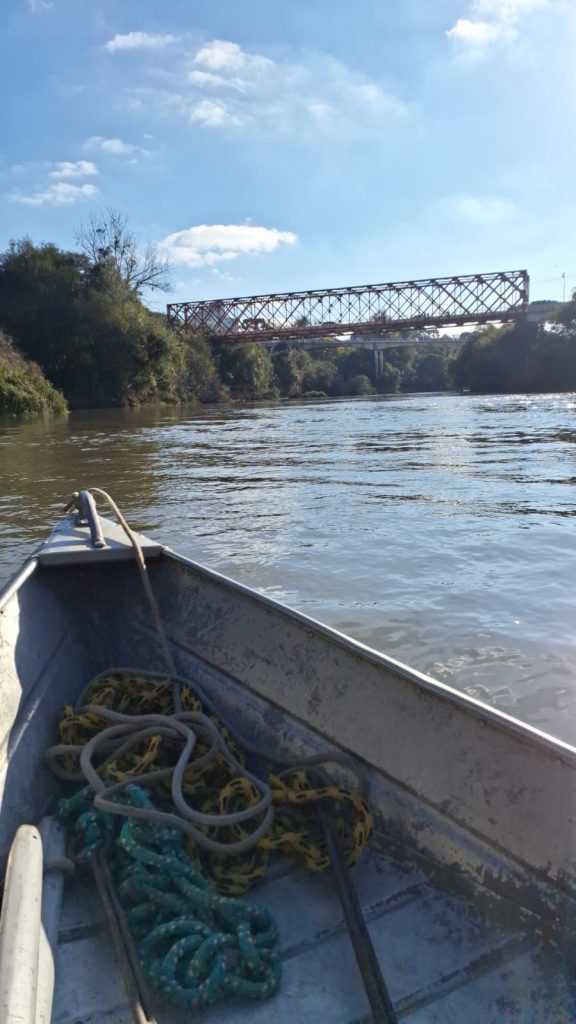 A equipe de busca, composta pelo 3º sargento Bruno e pelo cabo Robinson, iniciou os trabalhos com a embarcação “Lancha Coral”, partindo da rampa do Peri. O trajeto percorreu aproximadamente 11 quilômetros rio abaixo, com varreduras visuais e inspeção nas margens nas imediações da ponte metálica. Apesar do esforço, nada foi localizado.