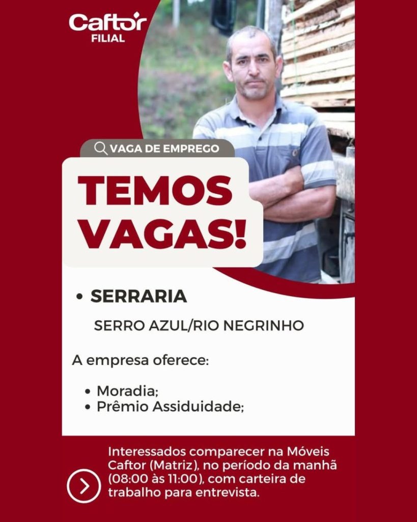 RIO NEGRINHO. Se você está em busca de uma oportunidade de trabalho, venha fazer parte do nosso time!