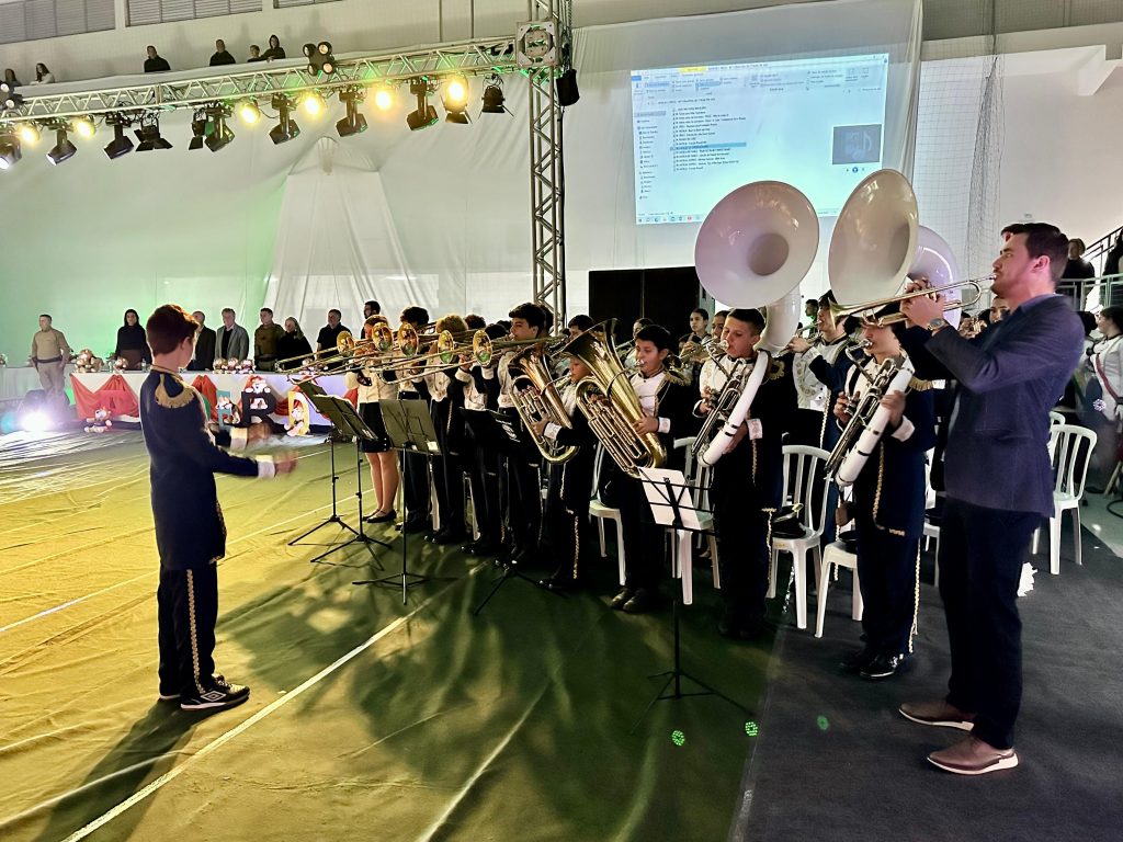 Um dos destaques da noite foi a apresentação da Banda Marcial Castelo Branco, que abrilhantou a celebração e encantou o público presente.
