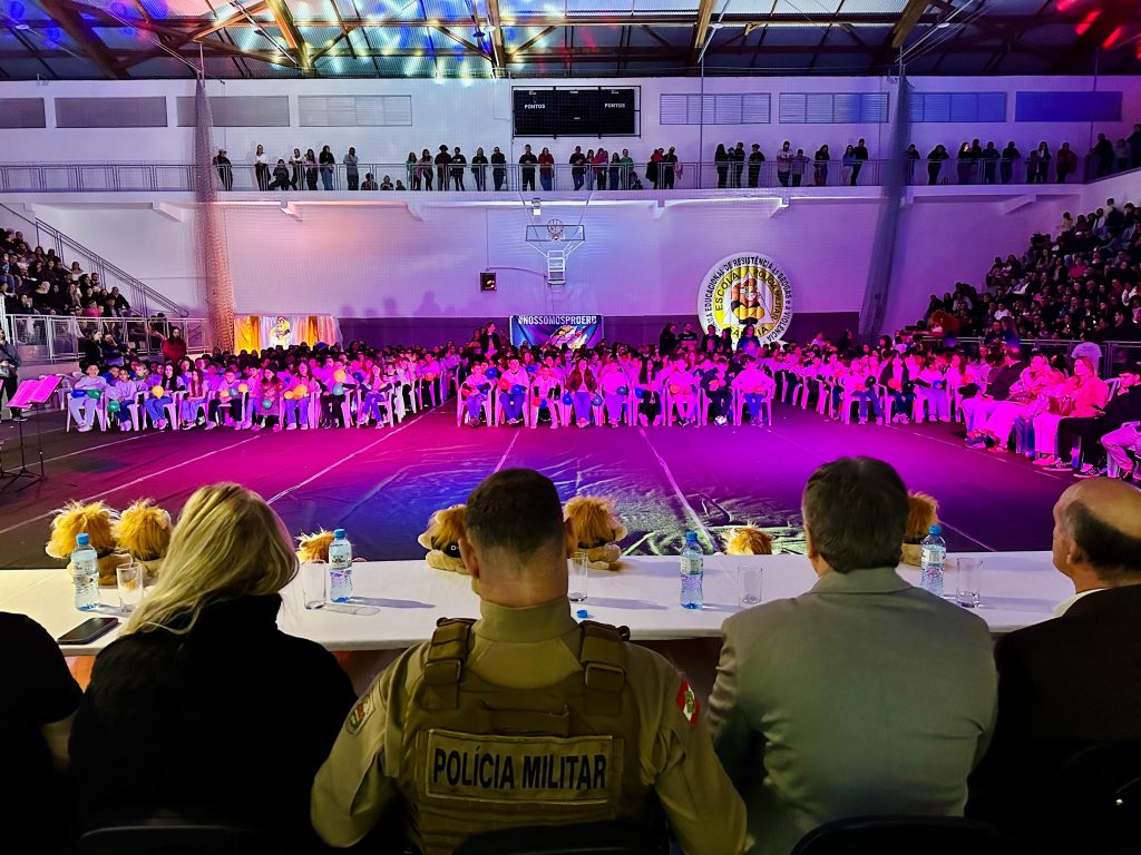 SÃO BENTO DO SUL. A noite desta quarta-feira (16) foi especial, com a realização da 46ª formatura do Programa Educacional de Resistência às Drogas e à Violência (Proerd). Ao todo, 474 crianças participaram da solenidade, celebrando o encerramento de um ciclo de aprendizado sobre prevenção às drogas e à violência.