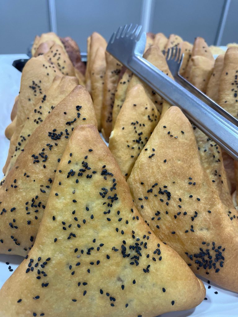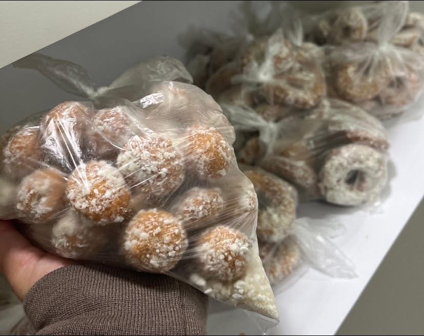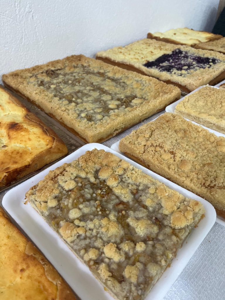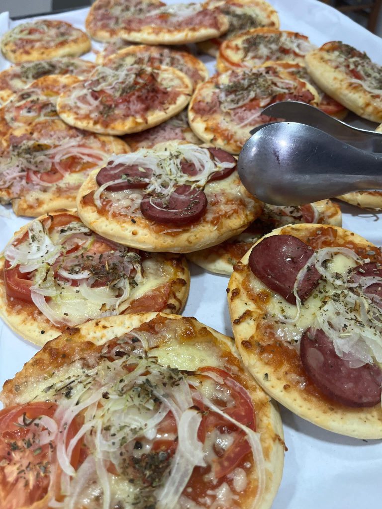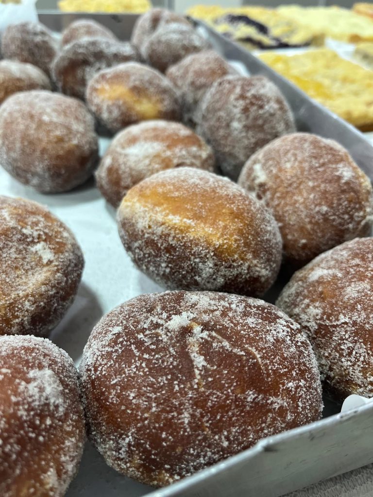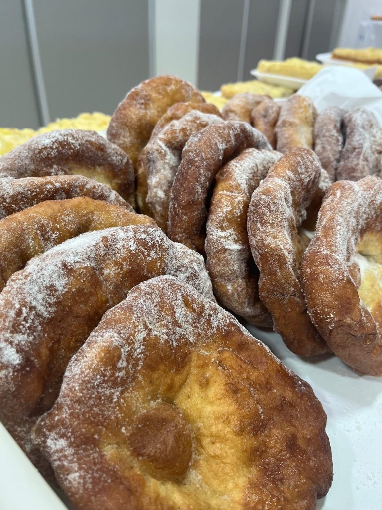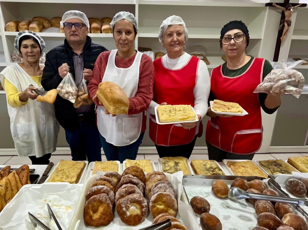 Durante todo o dia, as voluntárias estão vendendo cuques de vários sabores, sonho, joelho, esfirras e várias outras opções.
