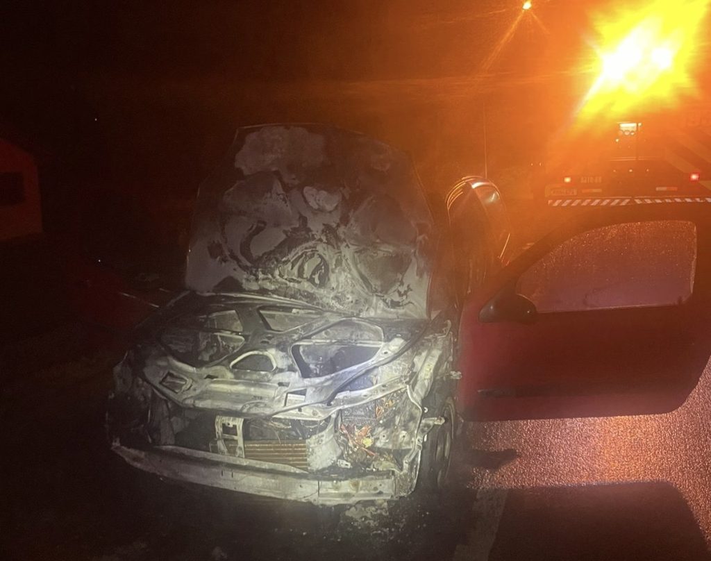 No local eles encontraram um Renault Clio estacionado na lateral da via, com a parte do motor em chamas, se estendendo para o interior do veículo. Com o uso do mangotinho e aproximadamente 300 litros de água, eles controlaram as chamas.