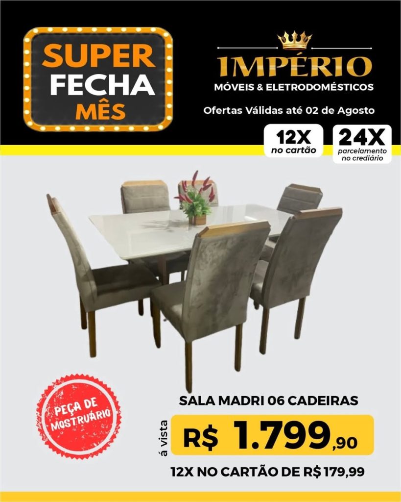 Tudo em até 24x no crediário e primeiro pagamento para 60 DIAS!