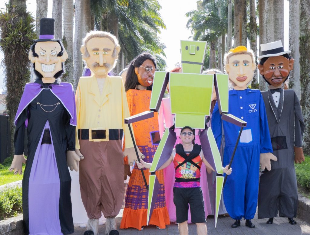 Já domingo (10), às 15h, a feira recebe a presença dos famosos bonecos gigantes de Joinville, da cia Essaé. Eles representam personagens e figuras folclóricas da cidade, como o músico Mestre Bera, Dona Fioca, a Rosa do Pé Inchado, o Chapeludo, Dona Margarida, o Moço Bonita do Baile, a Nova da Ponte, a bailarina, o trabalhador da indústria e o Neco Maneco.