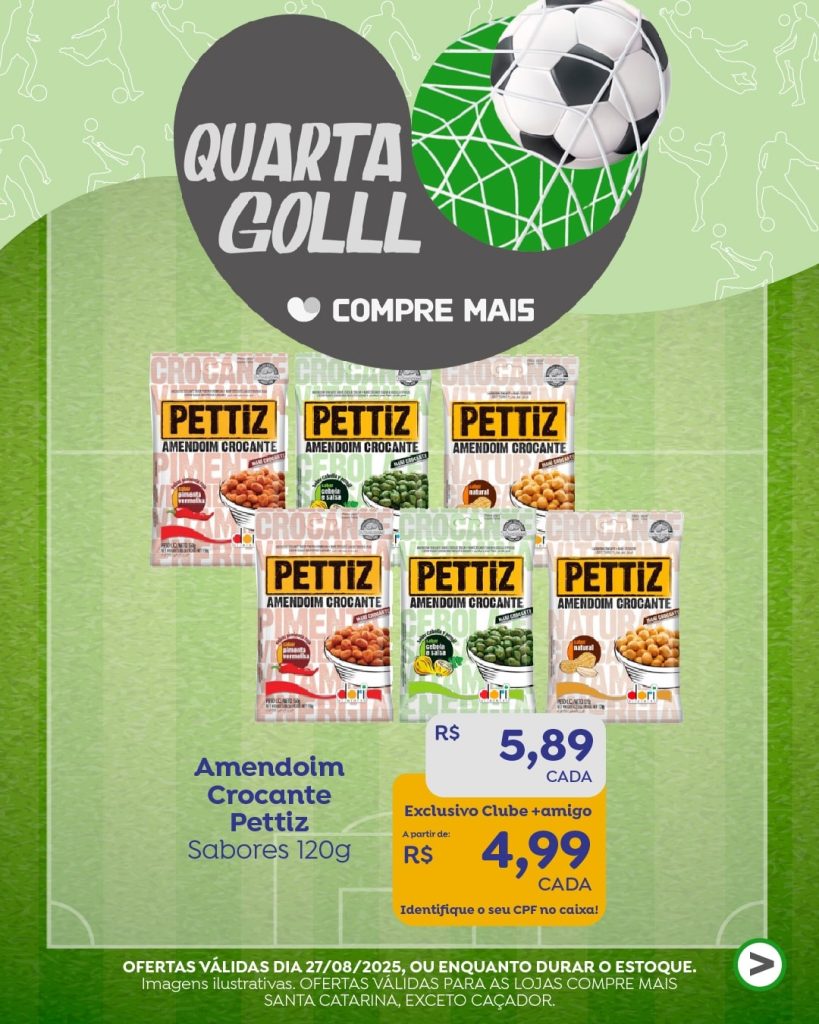 Válido para as lojas Compre Mais Santa Catarina, exceto Caçador e Porto União, Mega Lojas Rio Negrinho – Industrial Norte e Mafra – Centro/Baixada