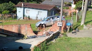 SÃO BENTO DO SUL. Duas pessoas foram atendidas pelos bombeiros neste domingo (28), após um carro ter batido contra um muro na Estrada Rio Negro, no bairro Colonial, por volta das 15h20.
