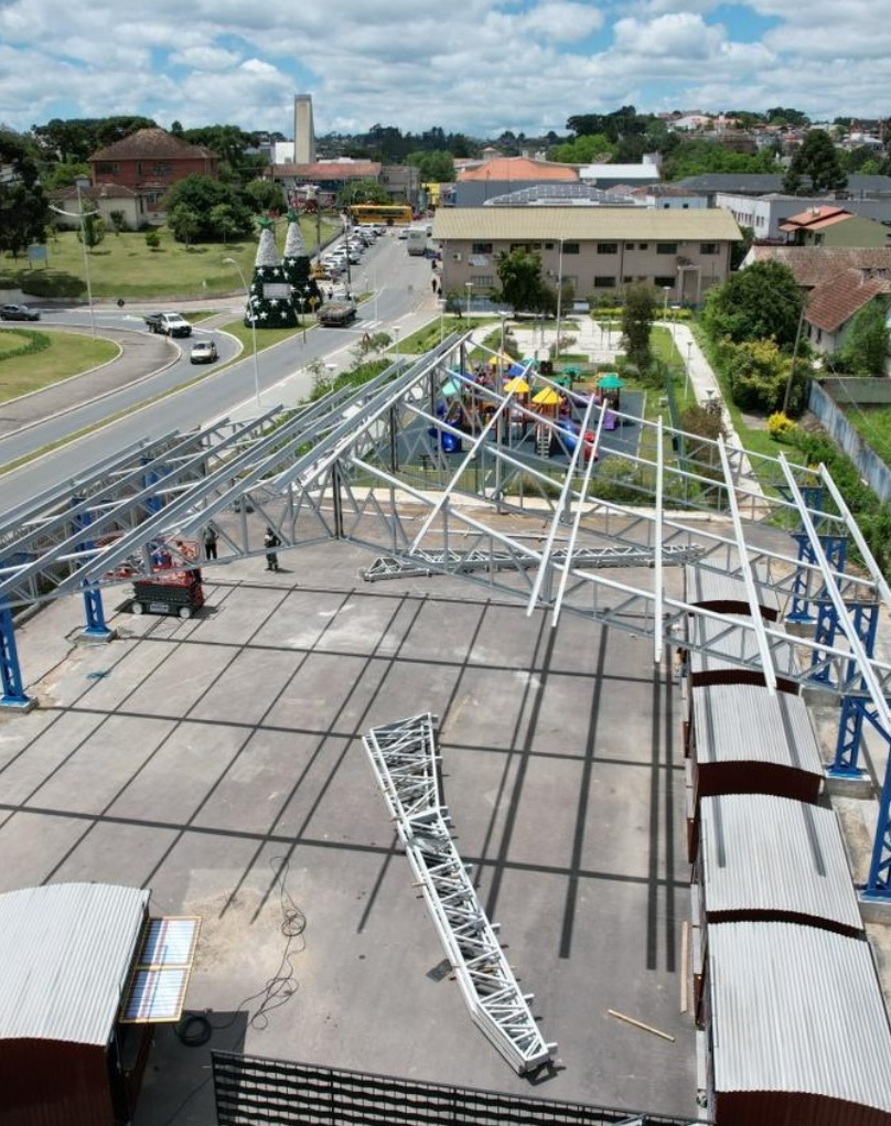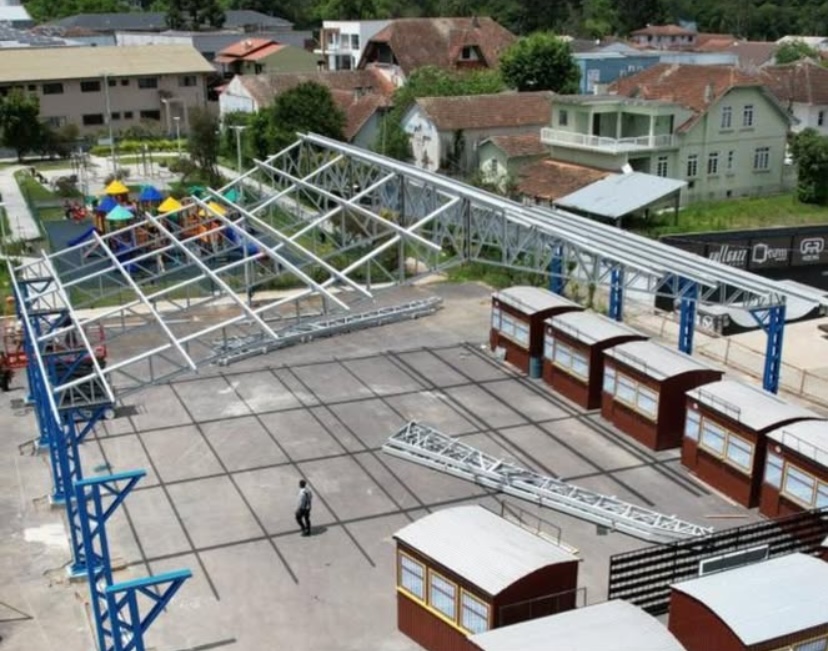 RIO NEGRINHO. A prefeitura informou hoje (10), que segue avançando com as obras de construção da nova cobertura metálica da Vila Gastronômica, localizada no centro do município.