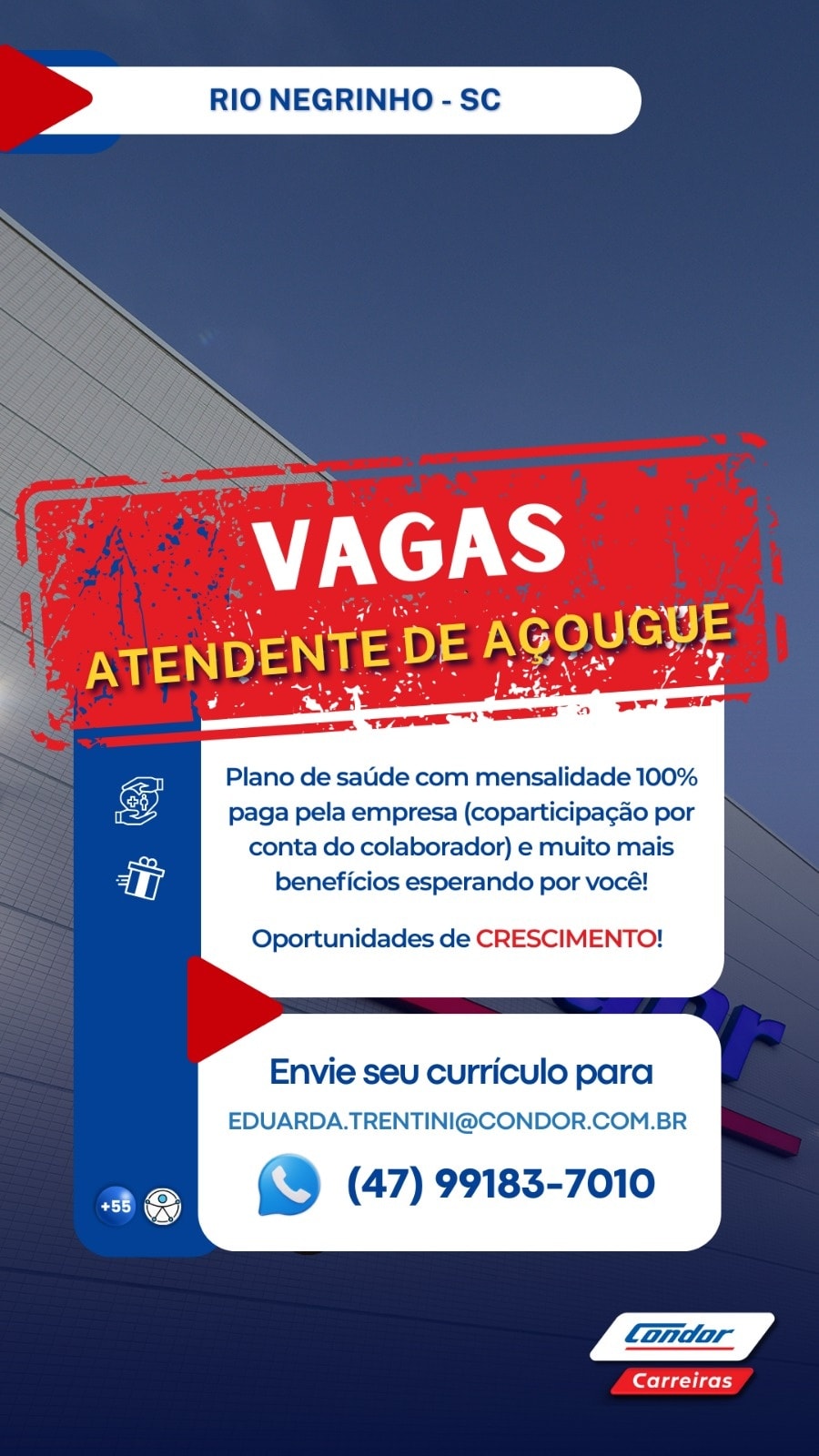 RIO NEGRINHO. O Condor está com oportunidades abertas para: