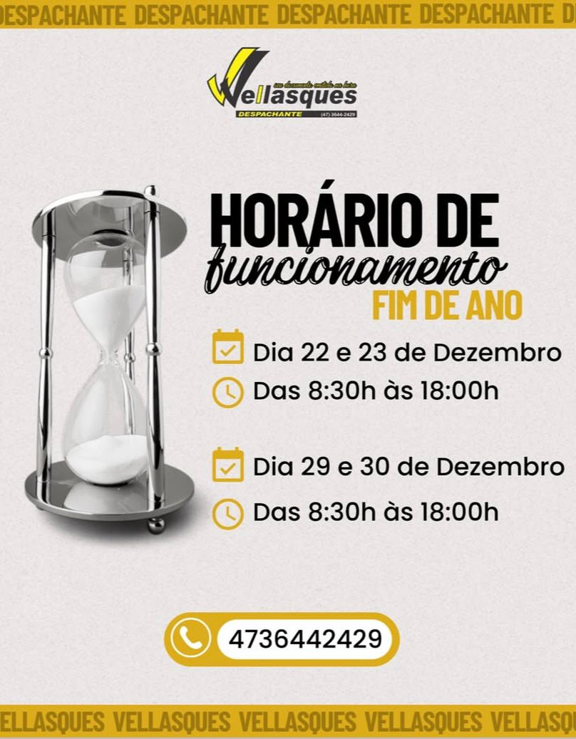 Por isso, o Despachante Vellasques atenderá das 08h30 às 18h30 desta terça-feira (30).