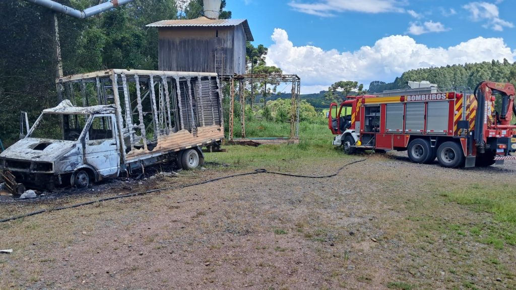 Eles informaram que no local encontraram um IVECO Daily, que já se encontrava totalmente em chamas.