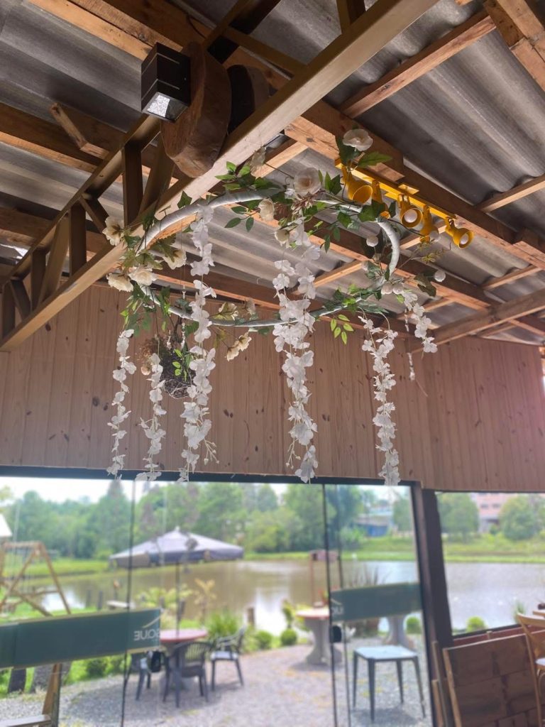 Além das delícias especiais, o Quiosque conta com um amplo e confortável ambiente fechado e muitas opções ao ar livre, em um grande espaço com muito verde, plantas, parque infantil, tanque de pesca e alguns animais.