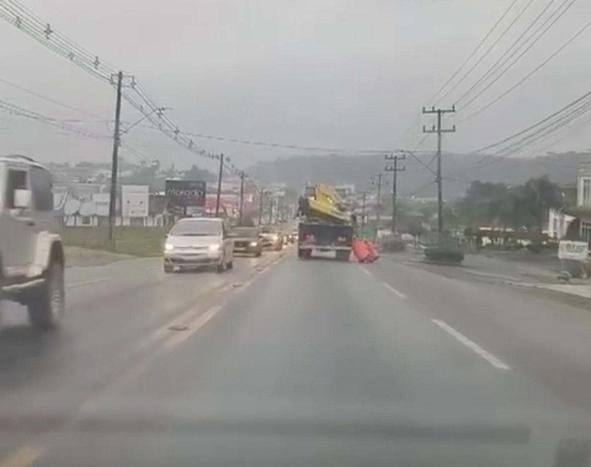 RIO NEGRINHO. A equipe do Nossas Notícias recebeu um vídeo de um seguidor que mostrou um caminhão circulando com o braço do munck solto. O flagrante ocorreu por volta das 7 horas da manhã, na BR-280.