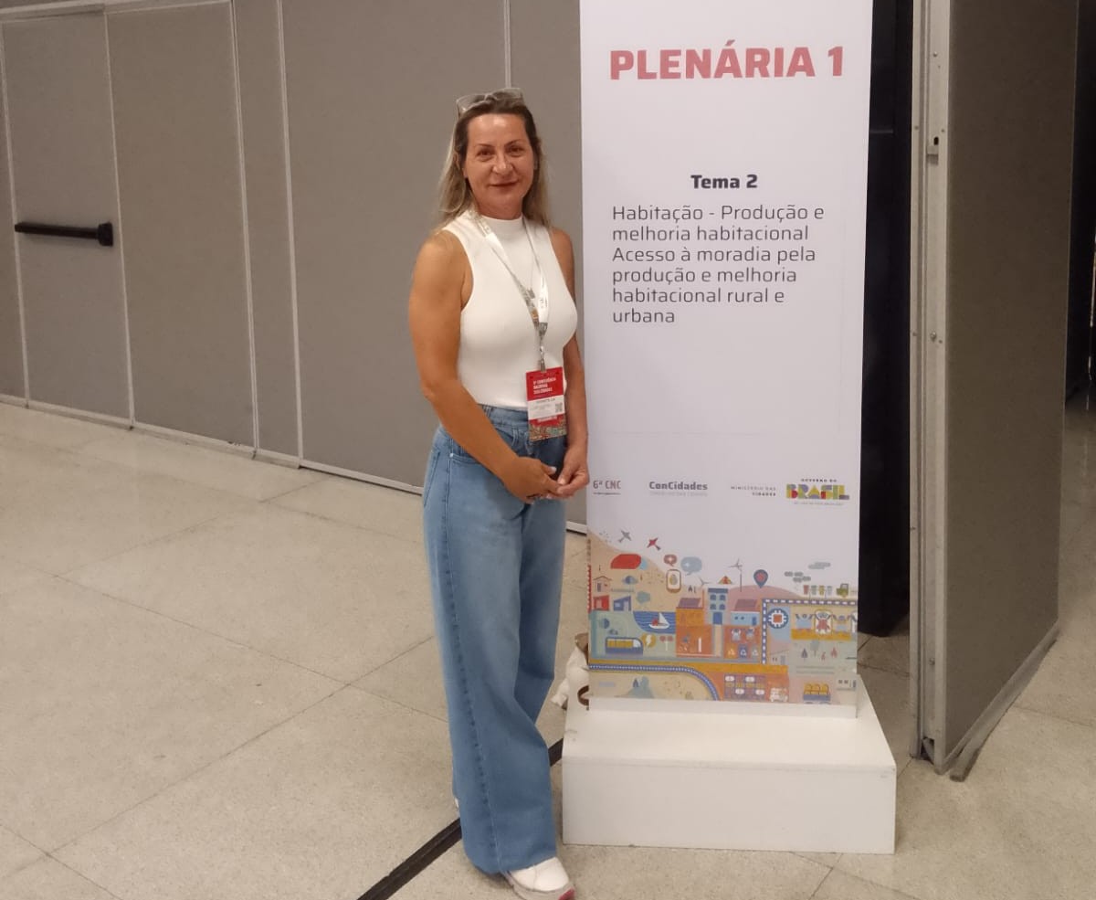 A etapa estadual da conferência foi realizada entre os dias 26 e 28 de janeiro, em Joinville, reunindo representantes de diversos municípios catarinenses. Durante o encontro, os debates foram organizados em três eixos principais: setores urbanos, gestão e financiamento das políticas públicas e temas transversais como sustentabilidade, transformação digital e segurança pública. Representando os movimentos populares por meio da Associação de Moradores de Volta Grande e Águas Claras, Kika participou das discussões e acabou sendo escolhida como uma das delegadas que representaram Santa Catarina na etapa nacional da conferência.