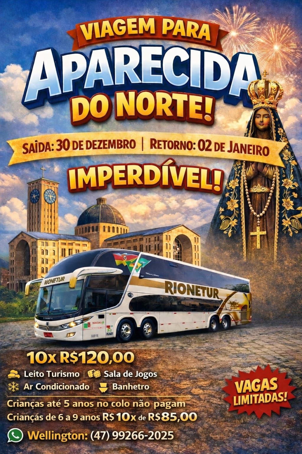 RIO NEGRINHO. Participe da nossa viagem especial para Aparecida do Norte e renove sua fé ao lado de Nossa Senhora Aparecida.