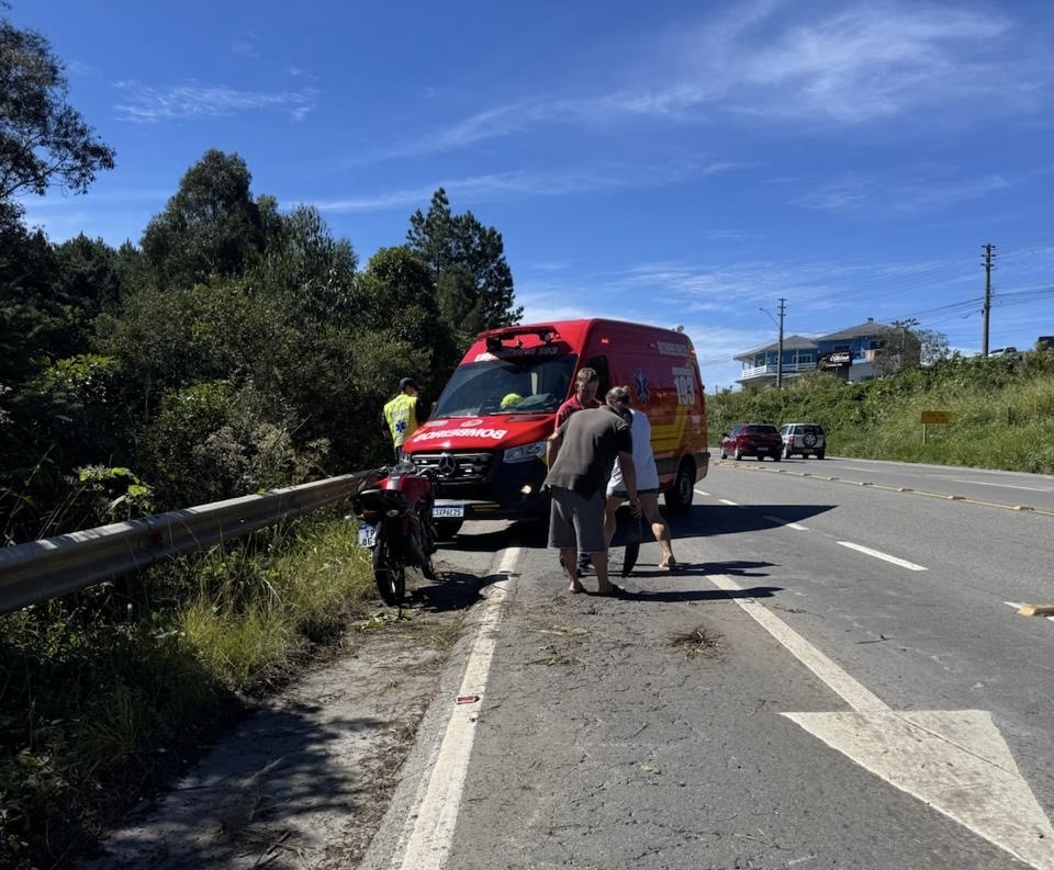 Dois jovens ficam feridos após queda de moto na SC-418, em São Bento do Sul