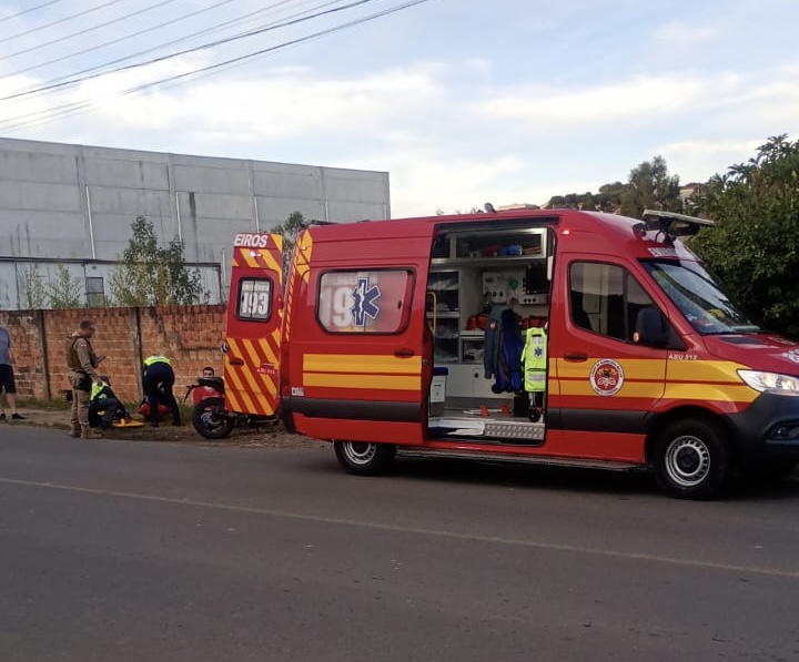 RIO NEGRINHO. B.C.L., um motociclista de 22 anos, perdeu o controle da direção da Yamaha Fazer que conduzia por volta das 17h22 de hoje (27), na rua Herberto Tureck, no bairro Quitandinha. Na sequência, colidiu contra o muro de um imóvel e após acionamento, foi socorrido pelos bombeiros.