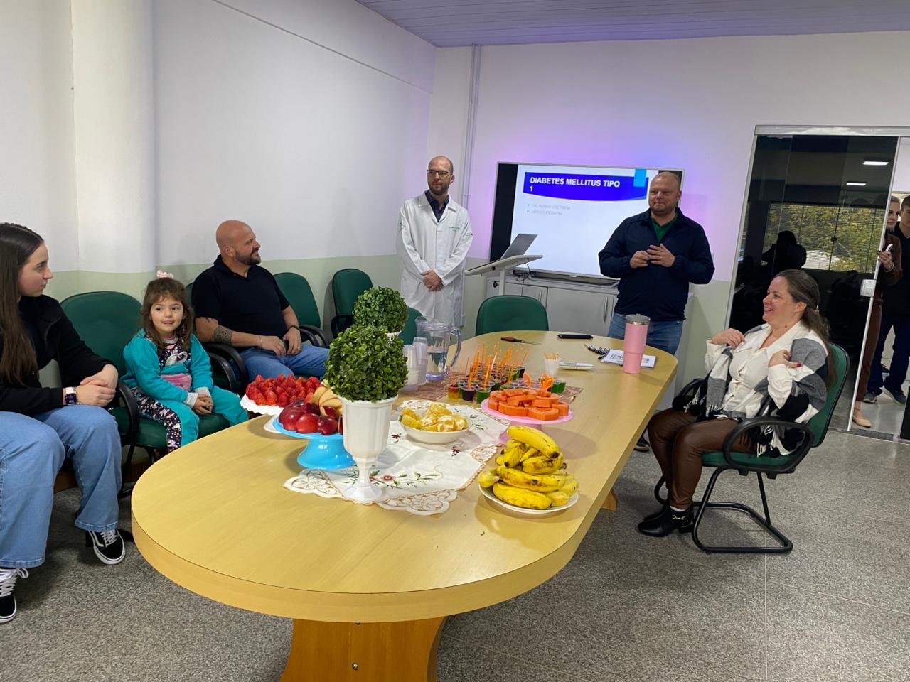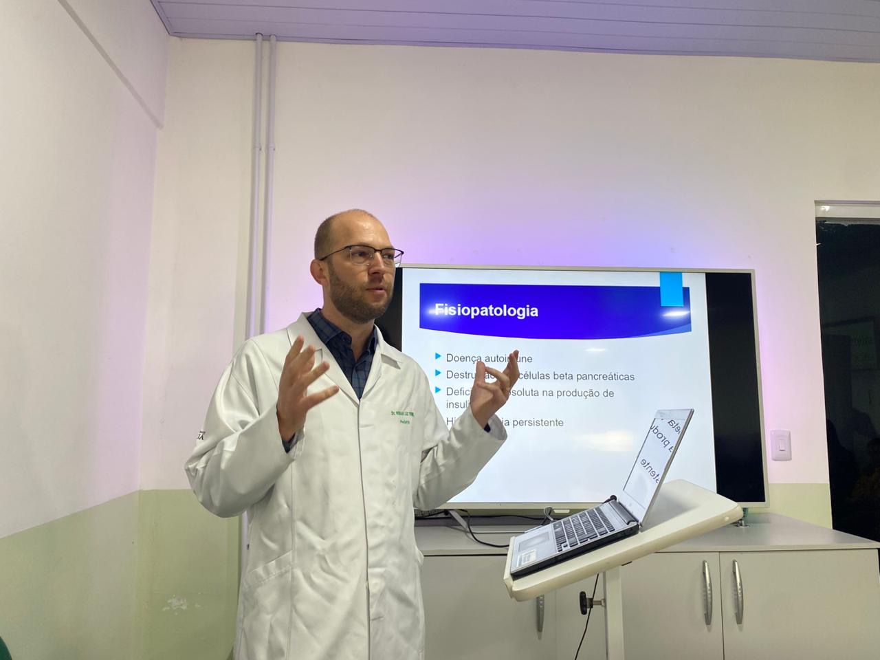 O pediatra Renan Treml, que também é diabético, neste momento faz uma explanação sobre a doença.